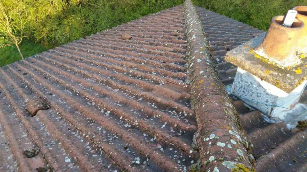 Démoussage toiture. Nettoyage hp et application anti-mousse.