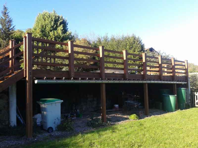 Nettoyage haute pression Lasure. Rénovation terrasse, balustres et escalier. Nettoyage hp suivi de 2 couches de saturateur.
