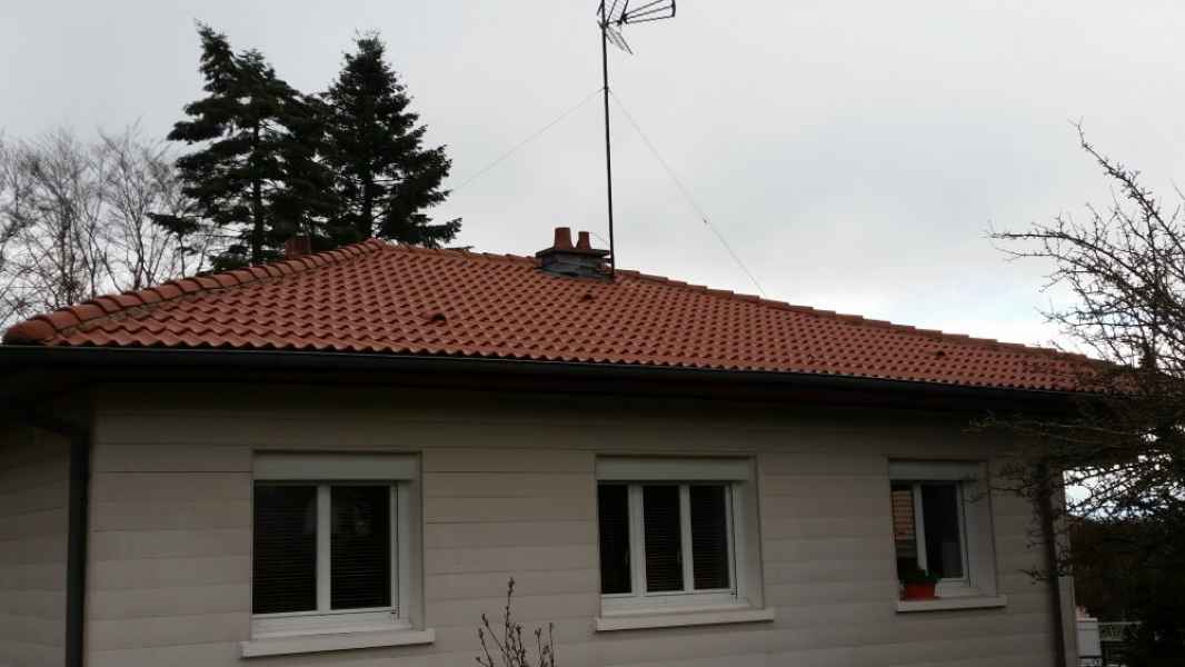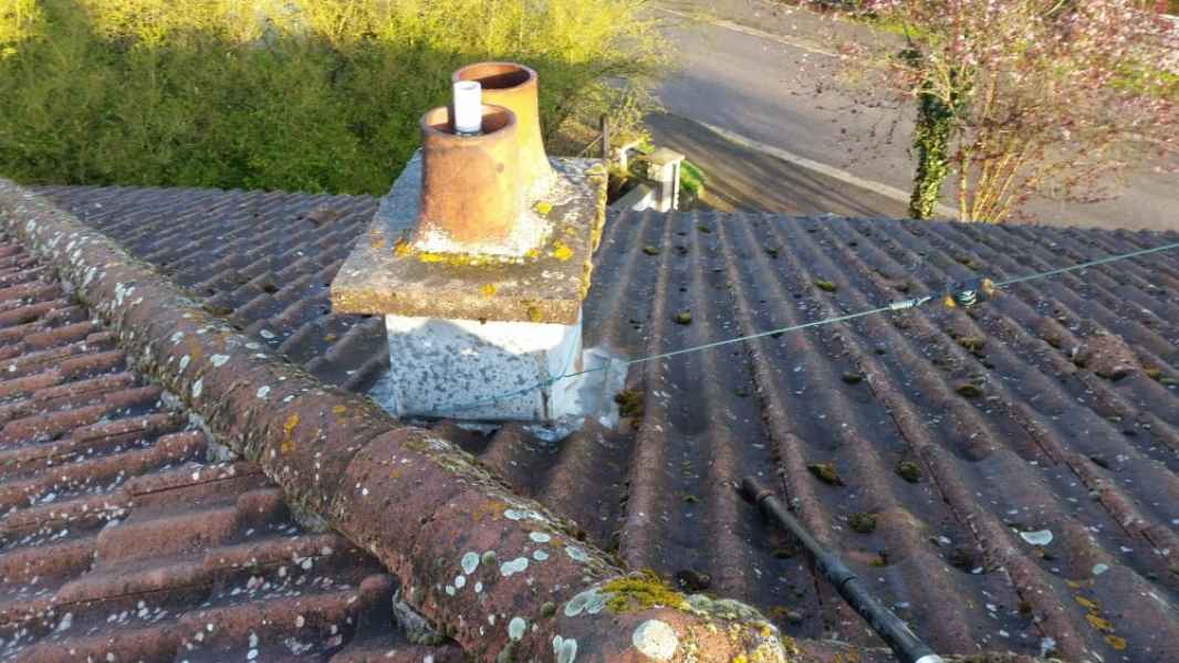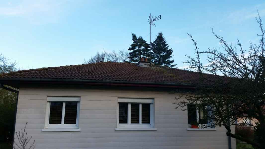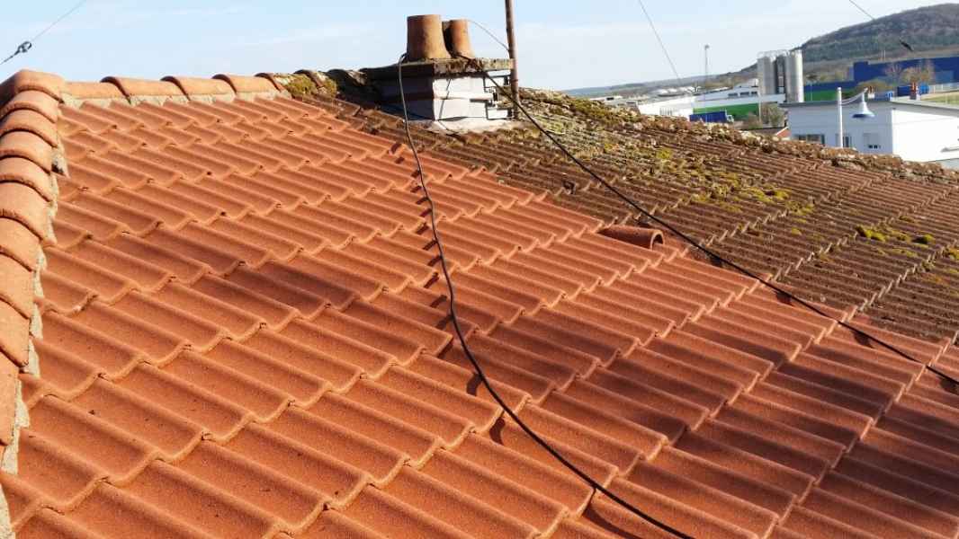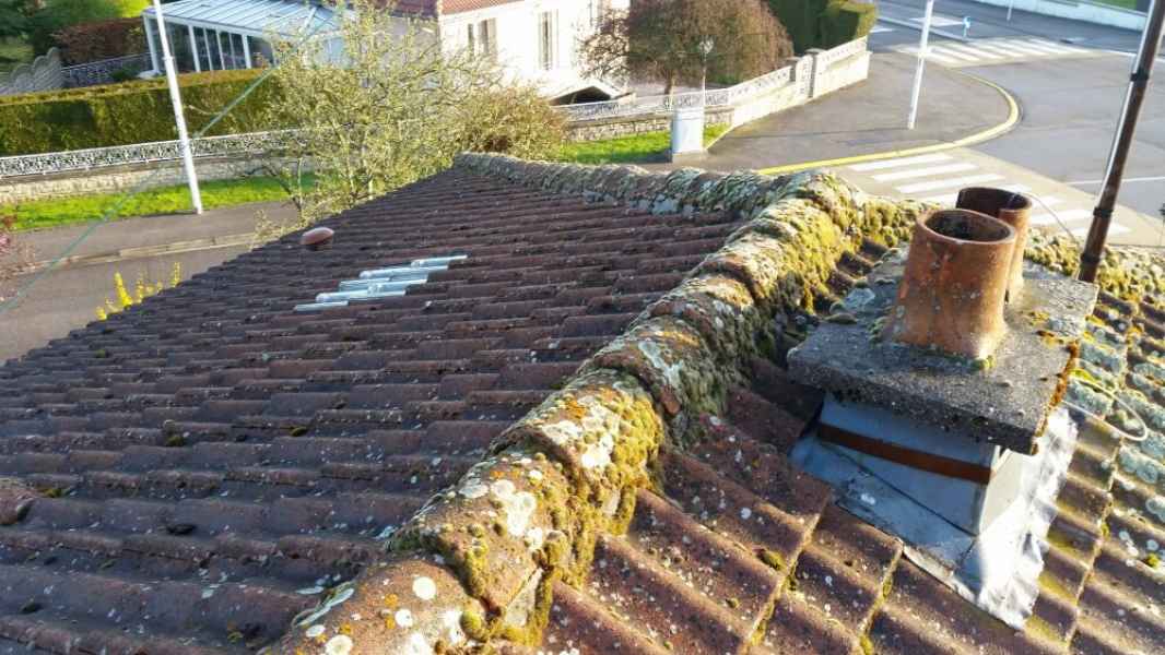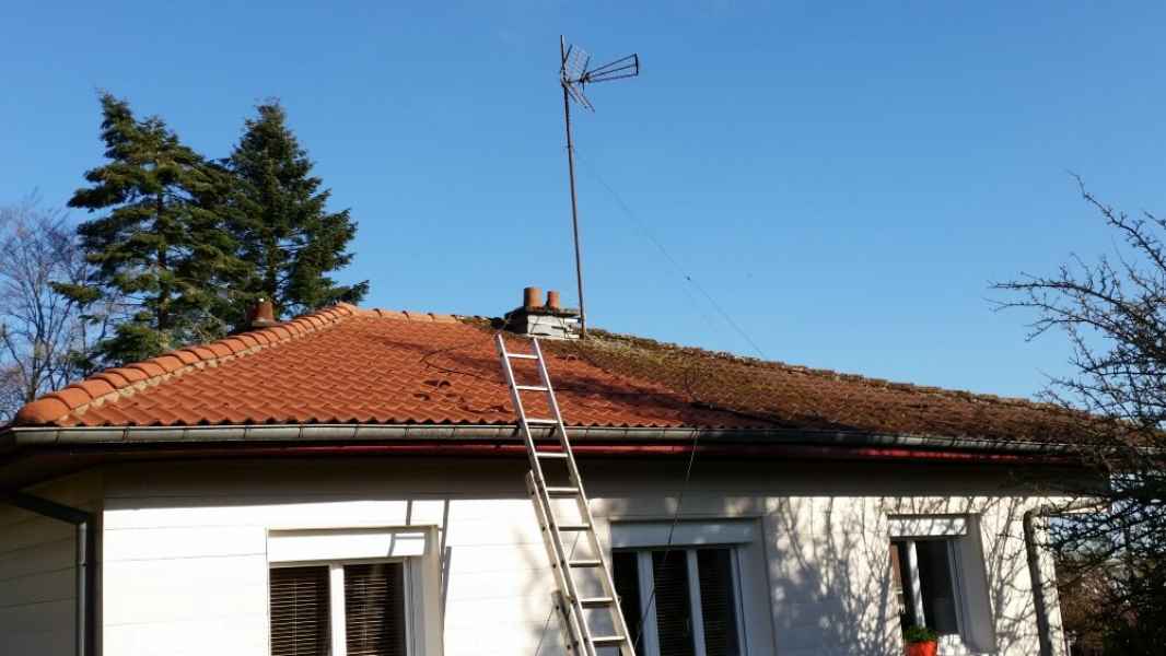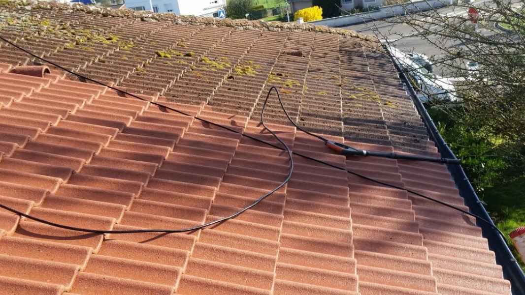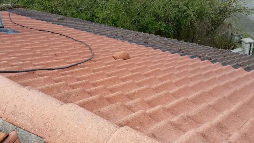 Démoussage toiture. Nettoyage hp et application anti-mousse.