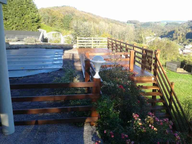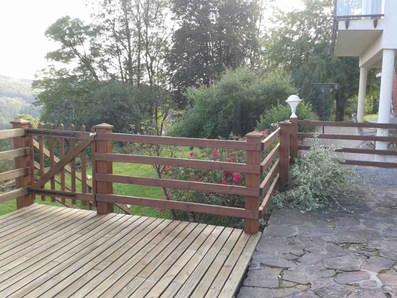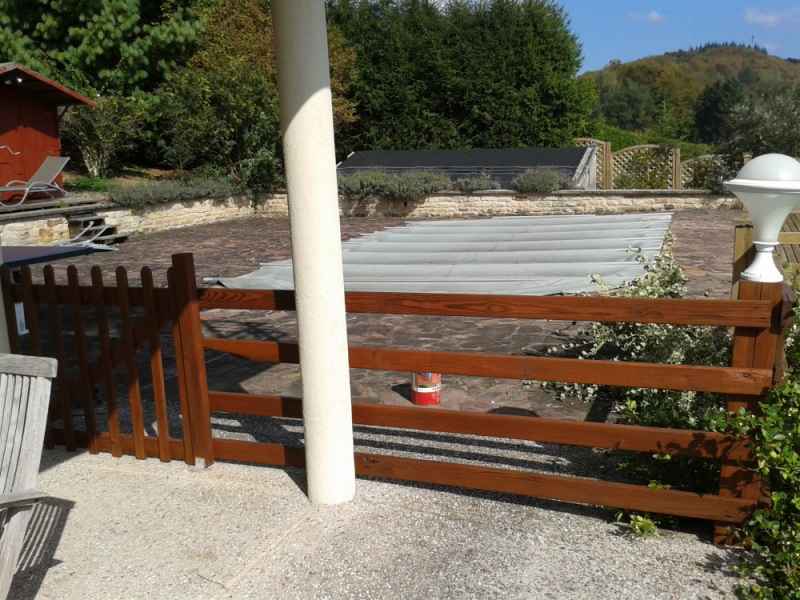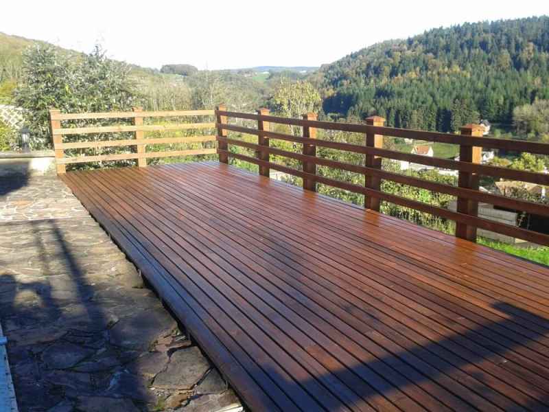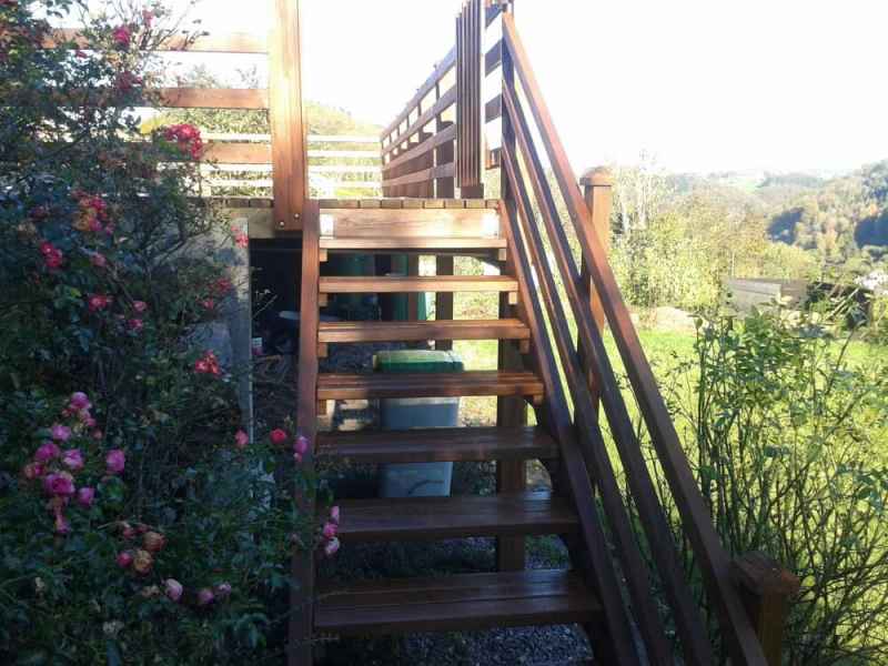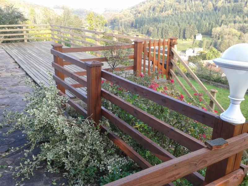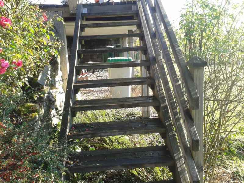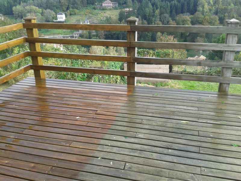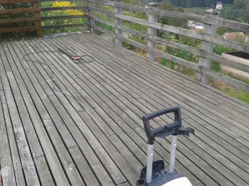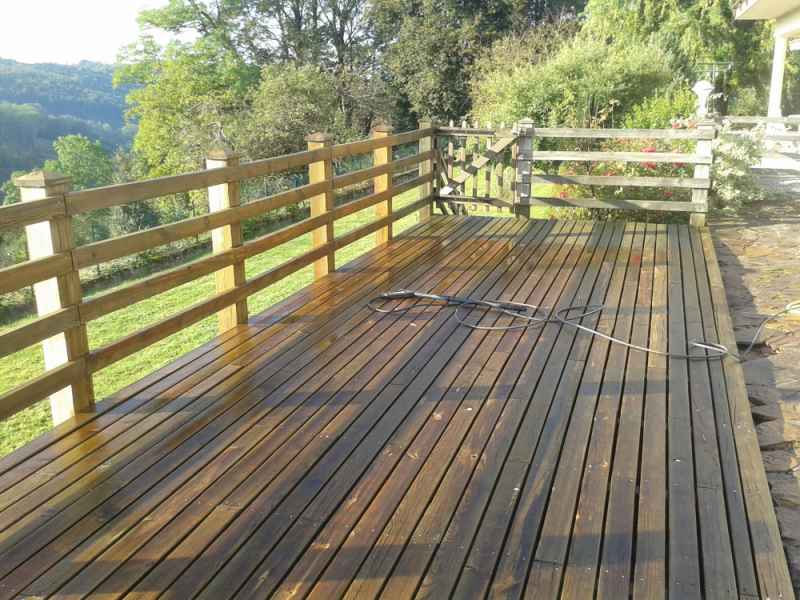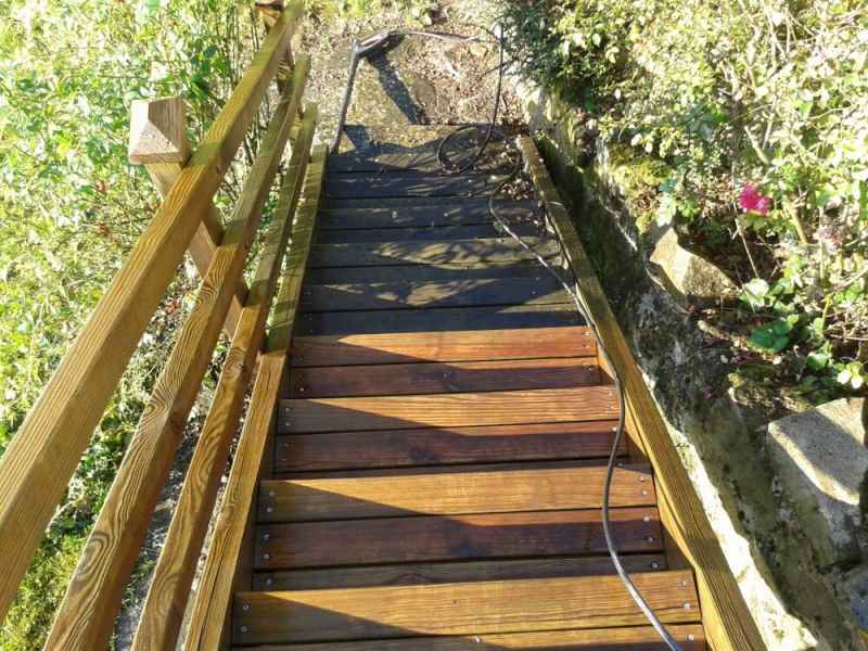 Nettoyage haute pression Lasure. Rénovation terrasse, balustres et escalier. Nettoyage hp suivi de 2 couches de saturateur.