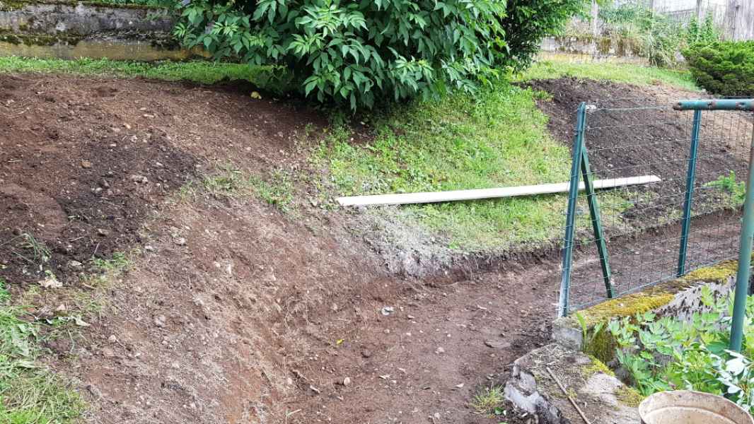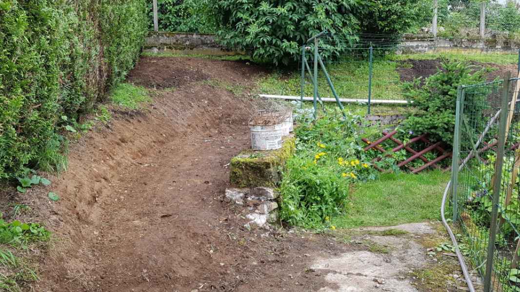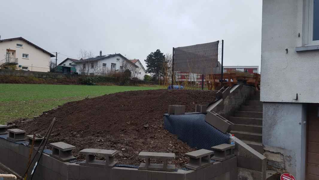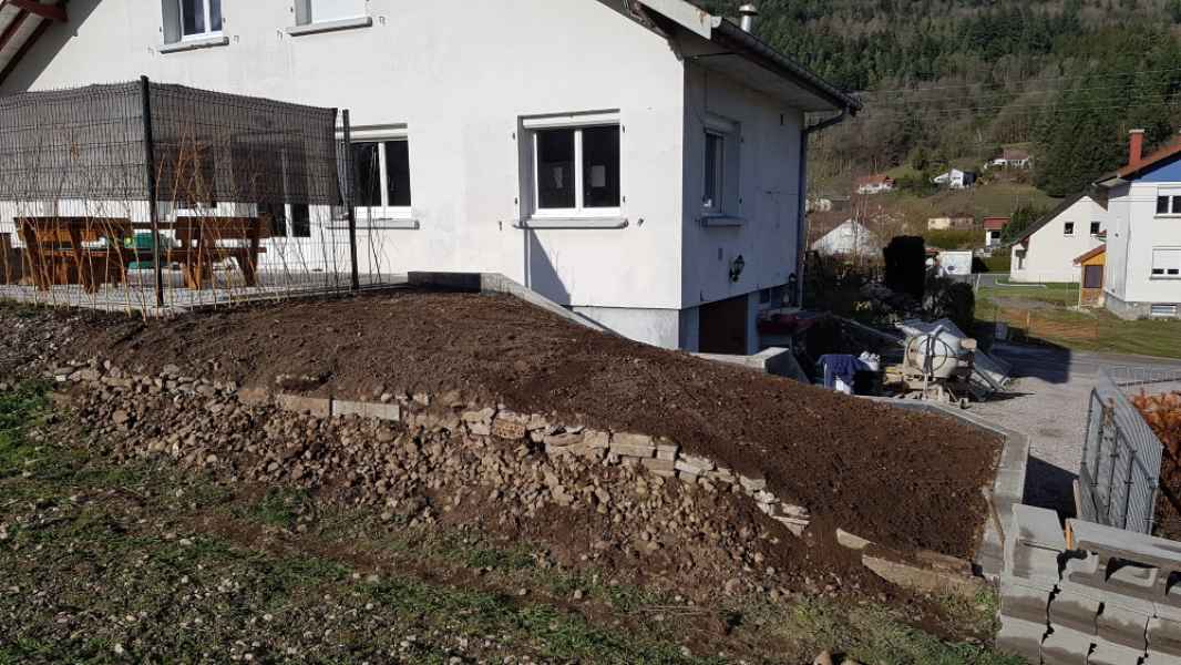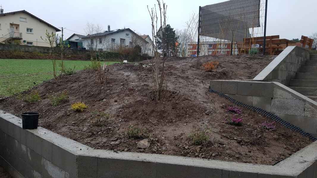 Création murette de soutènement pour talus arboré.